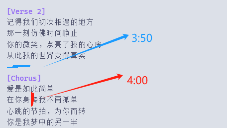假如你给的歌词太长,4分钟内唱不完,当你扩展时不要从4分钟开始,而是从前一个段落的时间节点,比如: